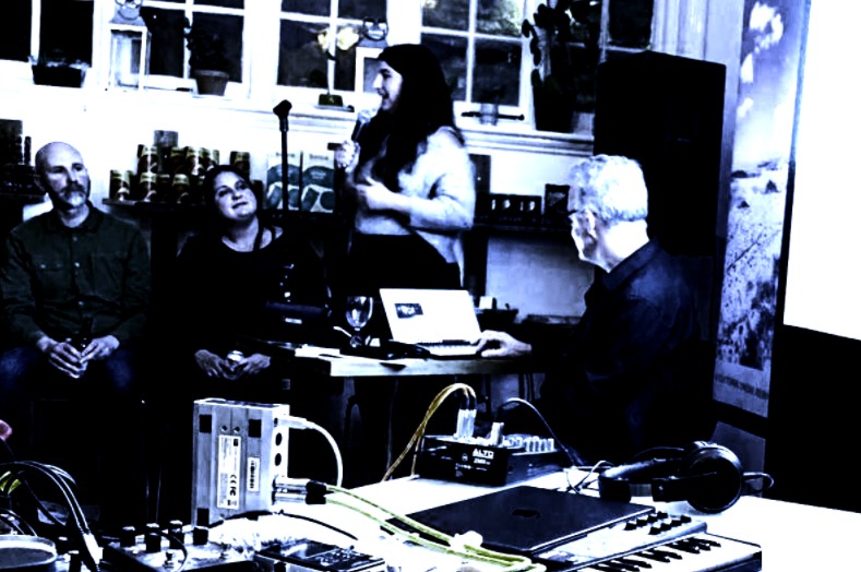 We began with two of Elena Botts’ (second from left above) experimental films titled “some little works” and a poetry reading which expressed a glitched sensibility for disturbance. Elena spoke about how journeying between the disturbances of “natural” and “urban” settings inform her work. The experience served as a perfect entry point to explore how interplays between sonic, social, and ecological disruptions shape a “journey” or process in art.