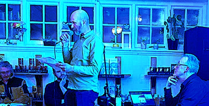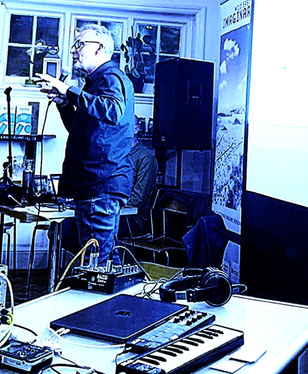 Giles Tofield (below) from the Cultural Engine Research Group introduced the audience to the evening as a central part of the experimental approach of CERG, taking disruptive “pop up” critical theory into pubs and other community spaces in order to challenge the notion that knowledge belongs behind a university paywall. CERG started in 2014 with Club Critical Theory (and a performance by Stuart Bowditch) after the introduction of 9k tutional fees and the rise of Brexit. In the current crisis of the failing neoliberal education business model, this outreach project feels less like an experiment and more like an imperative. We need a new Faculty of the Imagination.